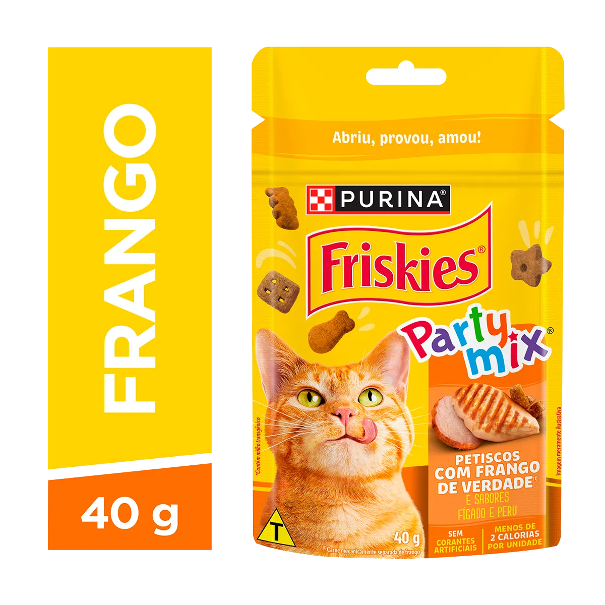 PURINA FRISKIES® PARTY MIX®: Compartilhe momentos amorosos e divertidos com este delicioso petisco feito com salmão de verdade¹ que foi desenvolvido para fazer seu gato explorar diferentes formas, cores naturais e sabores. Além disso, contém proteínas e vitaminas para ajudar o seu gato a ter uma vida saudável e feliz.